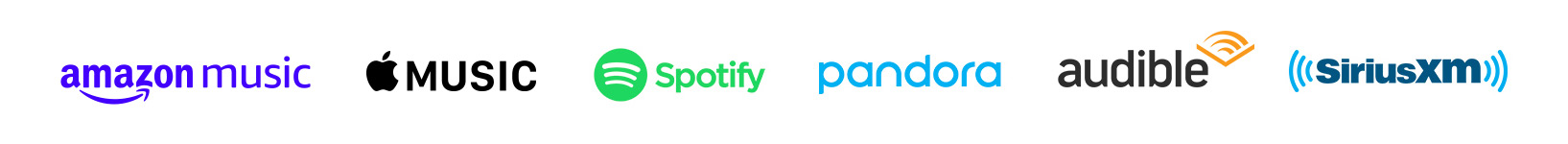 Play music from Amazon Music, Apple Music, Spotify, Pandora, SiriusXM, TuneIn, and iHeartRadio.